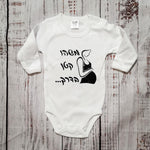 העיצוב המיוחד הזה מגיע על בגד לתינוק לבחירתכם: תוכלו לבחור בבגד גוף לתינוקות עם תיקתקים נוחים, אוברול לתינוקות רך ומפנק, או חולצת ילדים קלאסית ומתוקה. כל האפשרויות שלנו עשויות מ-100% כותנה סרוקה, מהסוג הרך והמלטף ביותר שמתאים בדיוק לעורו העדין של הבייבי, והגזרה תוכננה לאפשר תנועה חופשית ונוחות מקסימלית.