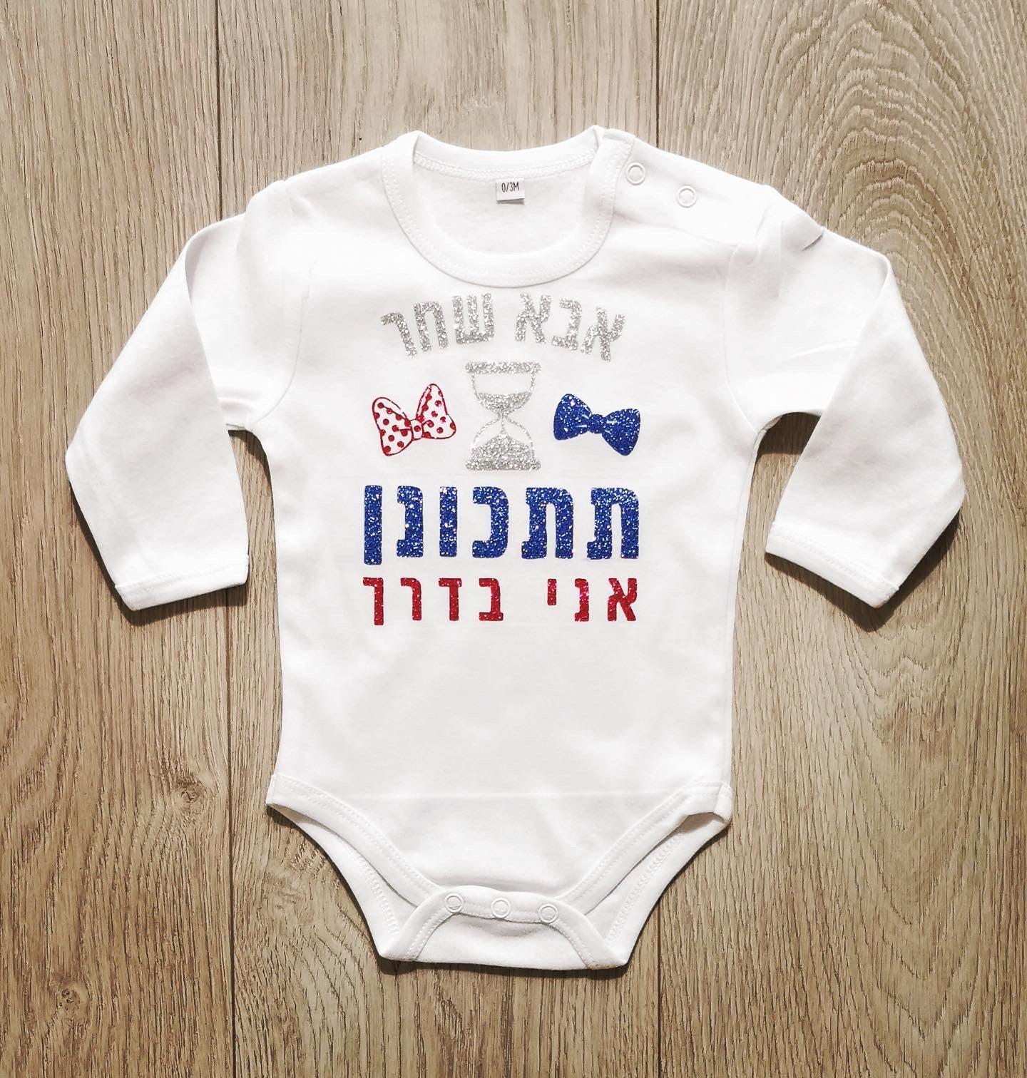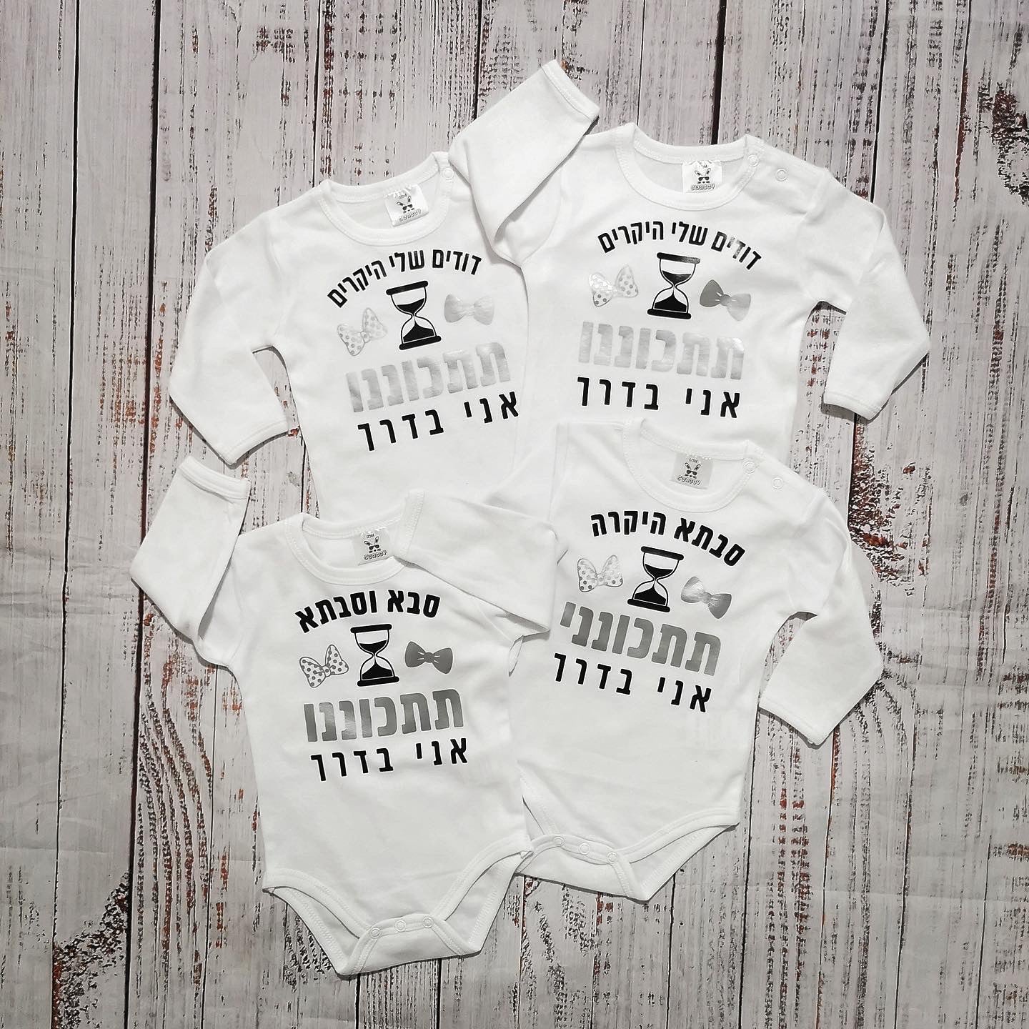 בגד לתינוק תתכוננו אני בדרך - הודעה על הריון