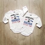 כדי להתאים את העיצוב לפרטים שלכם יש לבחור ולמלא את הפרטים כפי שאתם רוצים לעצב את הבגד. התמונות הן דוגמאות בלבד - הפרטים שתבחרו יופיעו על הבגד בדיוק כמו בעיצוב עצמו.