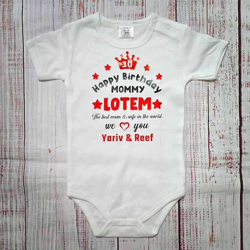 אמא היא גיבורת-על, נקודה. היא מנכ"לית, פסיכולוגית, נהגת, שפית ומומחית לחיבוקים, לפעמים הכל באותו זמן. העיצוב "Best Mom" הוא לא עוד מחמאה, הוא הכרה רשמית, מדליה של כבוד על התפקיד הכי קשה והכי מתגמל בעולם. זו הדרך להגיד לה "אנחנו רואים אותך, אנחנו מעריכים אותך, ובשבילנו את פשוט הכי טובה שיש". כשהבייבי הקטן, ההישג הכי גדול שלה, לובש את התואר הזה לכבודה, זה רגע של התרגשות טהורה. זה הרגע שבו היא מקבלת את החיזוק הכי אמיתי שיש, לא בווטסאפ ולא בשיחת טלפון, אלא על הדבר הכי מתוק שיצרה. זה הרגע שבו כל העייפות נמסה לתוך חיוך ענק. זו מתנה שהיא הרבה יותר מחפץ. זו תזכורת יומיומית (לפחות כל עוד הבגד עולה עליו) לכמה שהיא מוערכת ואהובה. זה הצילום שיישב לה על שומר המסך בטלפון, ויגרום לה לחייך בכל פעם מחדש, גם בימים הכי מאתגרים. וכדי שהאמא הכי טובה תוכל ליהנות מהרגע בלי דאגות, דאגנו שהבגד יהיה הכי טוב לבייבי שלה. 100% כותנה סרוקה, תוצרת ישראל, רכה כמו ליטוף ונושמת כמו שצריך. הגזרה נוחה, הכפתורים פרקטיים, ואין תוויות מגרדות. הכל כדי שהבייבי יהיה רגוע ונינוח, והחיוך של אמא יהיה אפילו יותר גדול. כל בגד כזה מקבל אצלנו טיפול אישי, כי מתנה לאמא הכי טובה דורשת את הטוב ביותר. ההדפסה נעשית בעבודת יד בסטודיו שלנו, תוך הקפדה על כל פרט. אנחנו מבטיחים שההדפס יישאר חד וברור, והתואר "Best Mom" לא ידהה בכביסה, כי הוא תואר של כבוד לכל החיים. בסופו של דבר, זו לא מתנה לאמא, זו מתנה לנשמה שלה. דרך מתוקה להגיד לה תודה על הכל, דרך הפה (או הבטן) של מי שהיא הכי אוהבת.