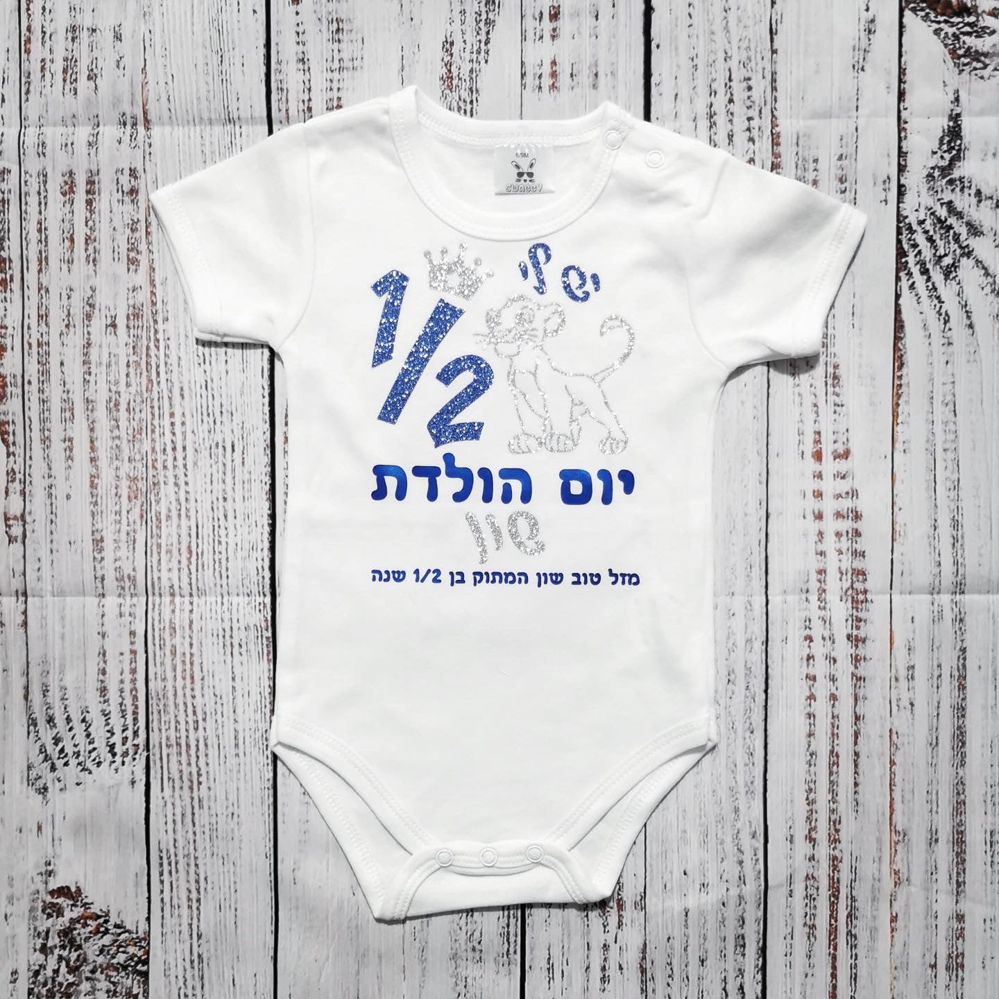 בגד לתינוק יום הולדת חצי שנה סימבה בעברית