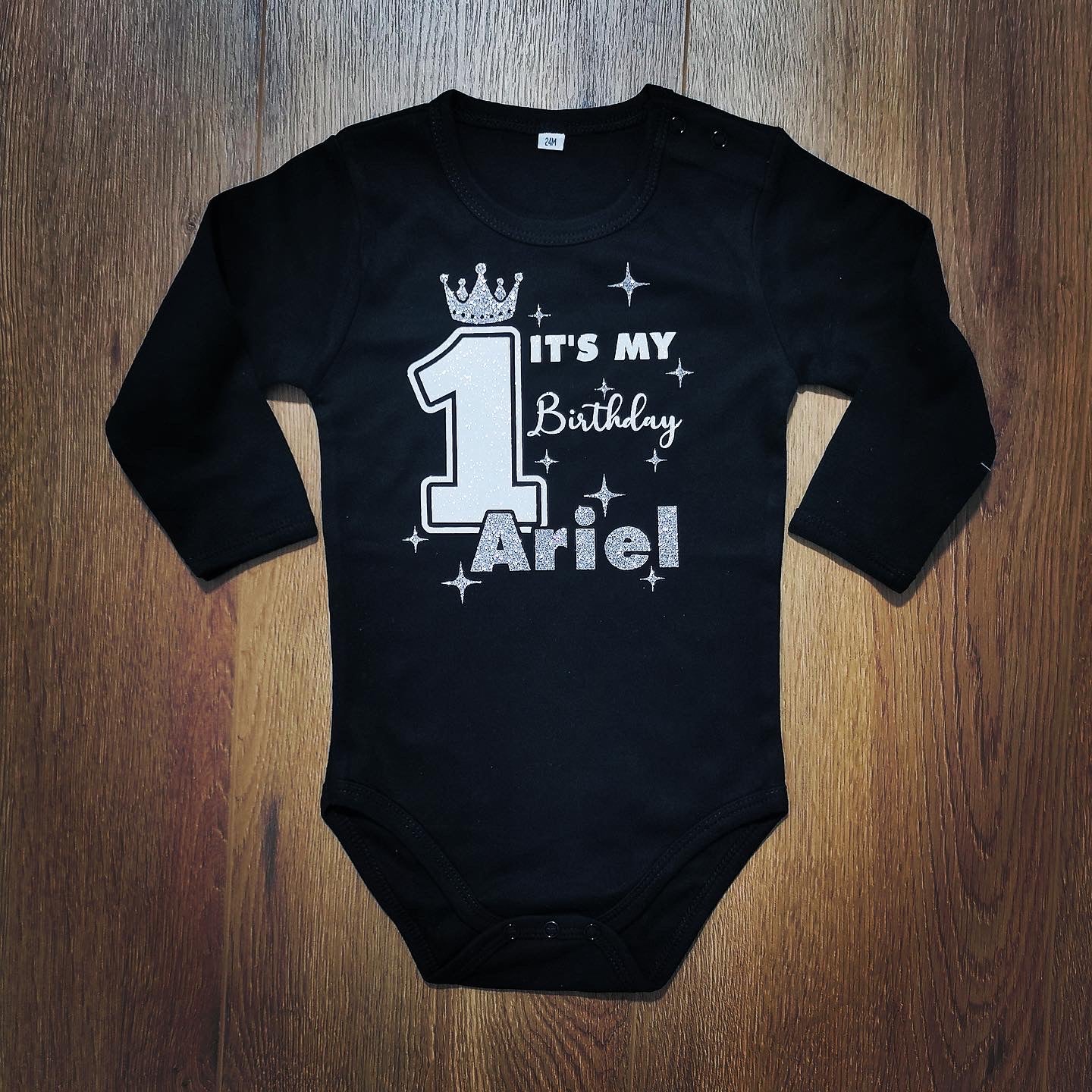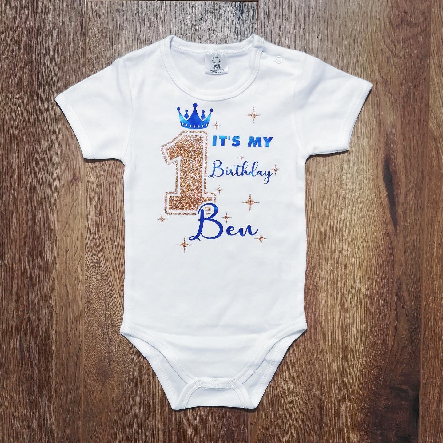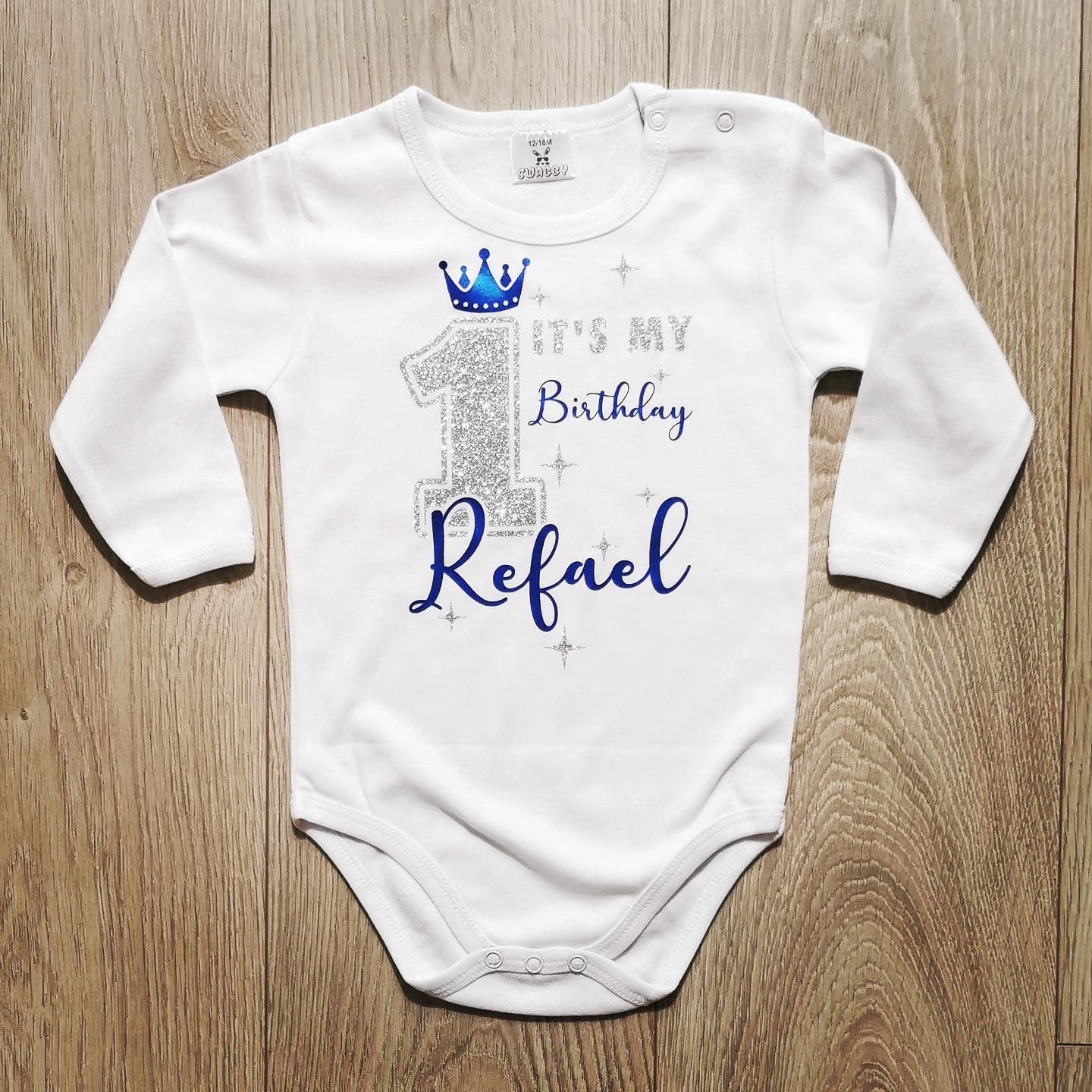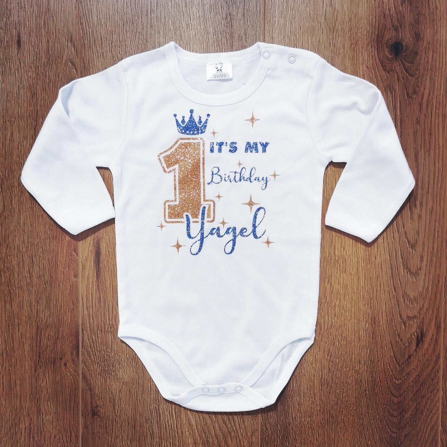 בגד לתינוק יום הולדת שנה עם שם באנגלית