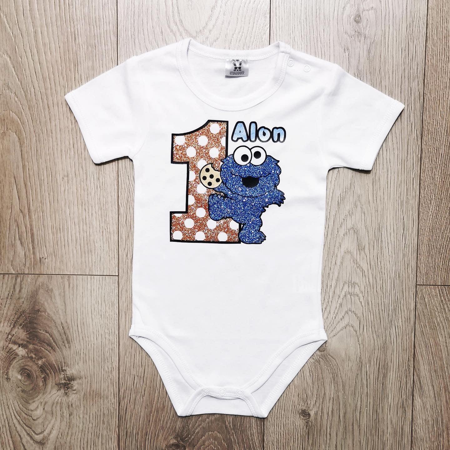 בגד לתינוק מיוחד בעיצוב עוגיפלצת ליום הולדת שנה