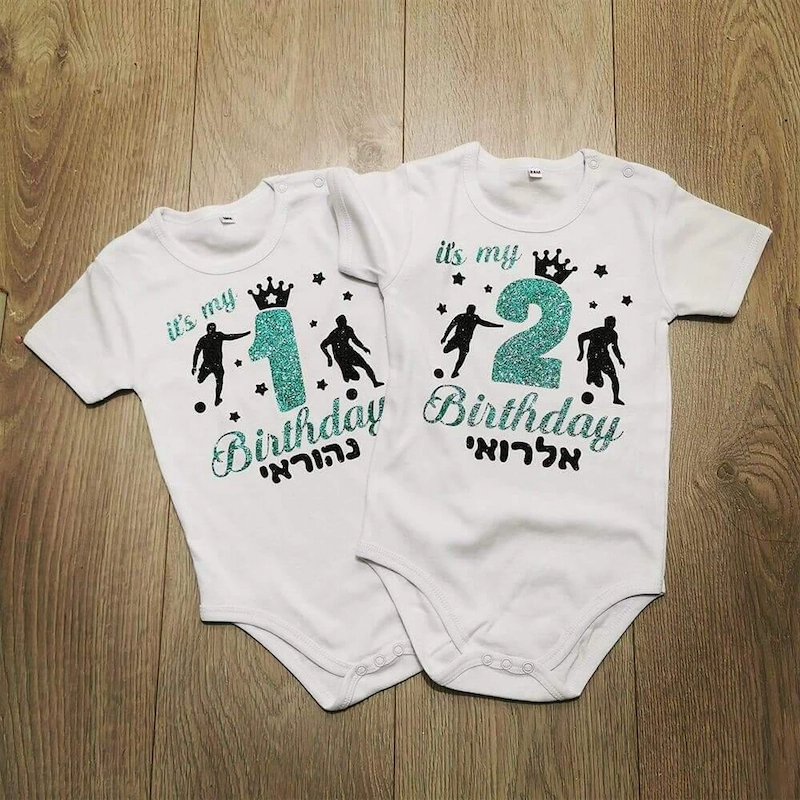 יש ילדים שנולדים עם כדור ביד (או ברגל). עוד לפני שהם הולכים, הם כבר בועטים בכל דבר עגול שהם מוצאים בבית, והקריאה "גול!" היא אחת המילים הראשונות שלהם. בשביל האלופים הקטנים האלה, שחיים ונושמים כדורגל, יצרנו את עיצוב יום ההולדת המושלם. זהו בגד שהוא מגרש שלם. עם איור של כדורגל, הדשא הירוק, והאפשרות להתאים אישית את שם השחקן והמספר (כלומר, הגיל), הבגד הזה הופך את ילד יום ההולדת לכוכב של הקבוצה. זו התלבושת הרשמית למסיבת יום הולדת בקונספט ספורטיבי, והיא מבטיחה שהאלוף שלכם ירגיש כמו מסי או רונאלדו ביום הגמר. דמיינו את התמונות: האלוף הקטן, לבוש ב"מדי הקבוצה" שלו, בועט בכדור הראשון של יום ההולדת. זה רגע של אושר טהור, גם בשבילו וגם בשביל אבא (ואמא!) שיושבים ביציע (כלומר, בסלון) ומעודדים בהתלהבות. זו מתנה שחוגגת את התשוקה לספורט, ועושה את זה בסטייל. וכמובן, גם הכדורגלן הכי צעיר צריך מדים נוחים שיאפשרו לו לרוץ, לקפוץ ולכבוש שערים. כל בגד שלנו מיוצר בישראל מ-100% כותנה איכותית ונושמת, שתשמור עליו יבש ונינוח גם אחרי 90 דקות של משחק אינטנסיבי בסלון. הגזרה נוחה ומאפשרת תנועה, וההדפסה הצבעונית נעשית בעבודת יד בסטודיו שלנו. אנחנו משתמשים בצבעים עמידים שישרדו גם תיקולים, נפילות, ובעיקר - הרבה מאוד כביסות. בסופו של דבר, זו המתנה המושלמת לאלוף הבא שלכם. היא חוגגת את האהבה למשחק, את רוח הספורט, והכי חשוב - את השחקן הכי יקר ללבכם.