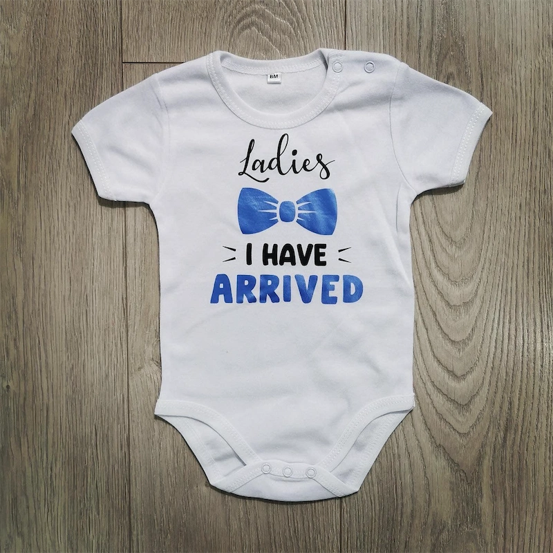 העיצוב "בנות, אני הגעתי!" הוא הצהרה שובבה ובטוחה בעצמה, שמכתירה את הבייבי ככובש הלבבות החדש בסביבה. הוא מעניק לו אישיות כריזמטית ומלאת קסם מהרגע הראשון, והופך את הגעתו לעולם לאירוע מרגש עם קריצה הומוריסטית. כשהבייבי שלכם לבוש בבגד הזה, הוא מכריז על נוכחותו בצורה הכי חמודה שיש. הוא הופך מיד למרכז תשומת הלב, ומעלה חיוכים וצחקוקים בכל מקום. זוהי מתנה מושלמת להורים עם חוש הומור, שרוצים לחגוג את בואו של הנסיך הקטן בסטייל.