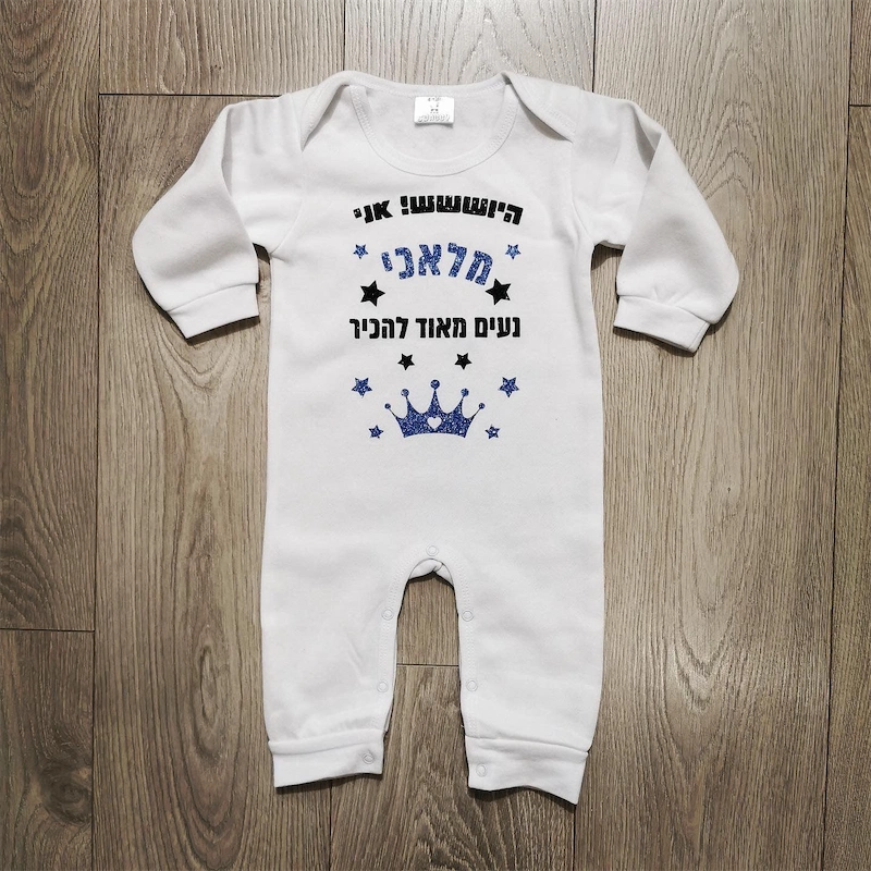 העיצוב "שלום כולם נעים להכיר" הוא הדרך הקלאסית, המנומסת והמרגשת ביותר להציג את הרך הנולד. זוהי ברכת שלום חמה ולבבית, שמכריזה על בואו של חבר חדש למשפחה ולעולם בצורה עדינה ומכובדת. כשהבייבי לבוש בבגד הזה, הוא הופך לשגריר קטן של נימוסים טובים וקסם אישי. הוא מגיש את עצמו בצורה הכי מתוקה שיש, והופך את המפגש הראשון לרגע של התרגשות טהורה. זהו הבגד המושלם לחזרה הביתה מבית החולים ולמפגשים הראשונים עם האהובים עליו.