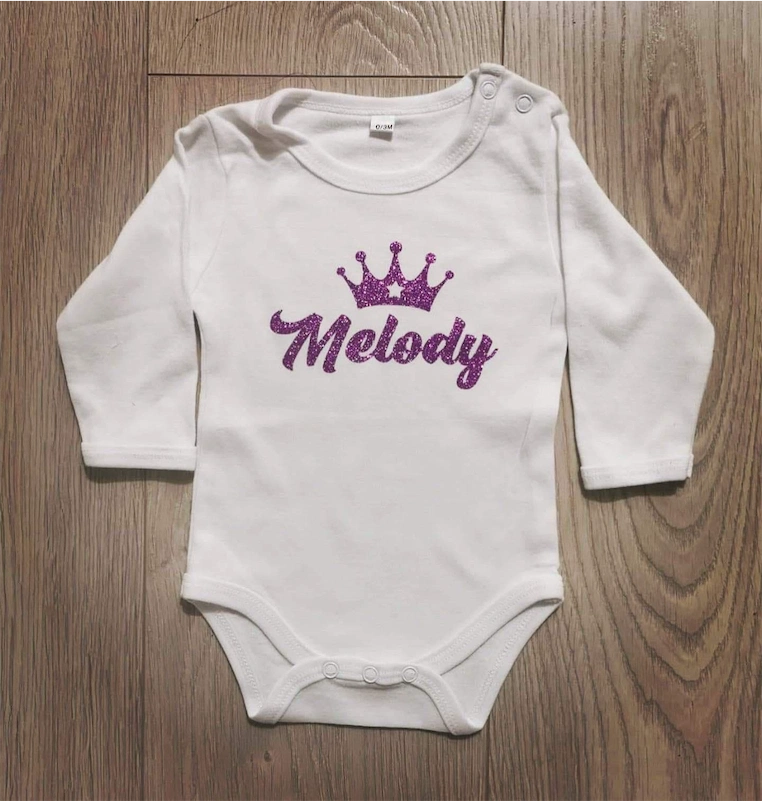 בגד לתינוק שם מעוצב עם כתר וכוכב