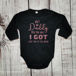 יש דרכים שונות להגיד "אבא שלי הכי טוב". אפשר להגיד את זה בפשטות, ואפשר להגיד את זה עם סוואג. העיצוב "Ain't no daddy like the one I got" הוא לגמרי האפשרות השנייה. עם ניחוח של שיר נשמה וסטייל שלא מהעולם הזה, הבגד הזה הוא לא סתם הצהרה, הוא הכרזה עם קצב. זה בגד לתינוק הכי קול בסביבה, זה שיש לו אבא עם פלייליסט משובח. הוא לא אומר רק שאבא שלו הוא הטוב ביותר, הוא אומר שהוא יחיד במינו, שאין עוד אחד כמוהו בכל העולם. זו מחמאה שהיא גם מגניבה, גם מרגשת, וגם מראה שלבייבי שלכם יש טעם טוב מלידה. זו המתנה המושלמת לאבא שיש לו סטייל ייחודי, זה שאוהב מוזיקה טובה ויודע להעריך אמירה עם אופי. כשהוא יראה את הבייבי שלו לבוש בזה, הוא ירגיש כמו כוכב רוק. זה רגע שמחבר ביניהם על רמה אחרת, רמה של קוליות משותפת. וכמובן, גם הבייבי הכי קול צריך להרגיש נוח. כל הבגדים שלנו מיוצרים בישראל מ-100% כותנה סרוקה ואיכותית, שהיא רכה כמו שיר אהבה ישן, ונושמת כמו שצריך. השקענו המון מחשבה בפרטים הקטנים. הגזרה מתוכננת לחופש תנועה מקסימלי, וההדפסה עם הפונט המיוחד נעשית בעבודת יד בסטודיו שלנו, עם צבעים עמידים שישמרו על הסטייל לאורך זמן. בסופו של דבר, זו מתנה עם נשמה. היא חוגגת את הייחודיות של אבא, ועושה את זה בדרך הכי מגניבה שיש. כי באמת, אין אבא כמו זה שיש לכם.