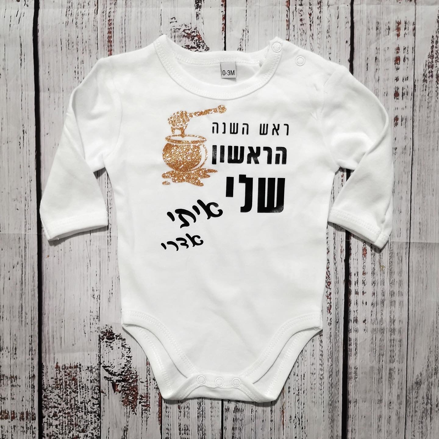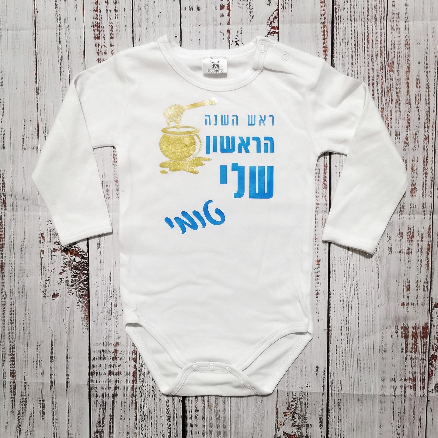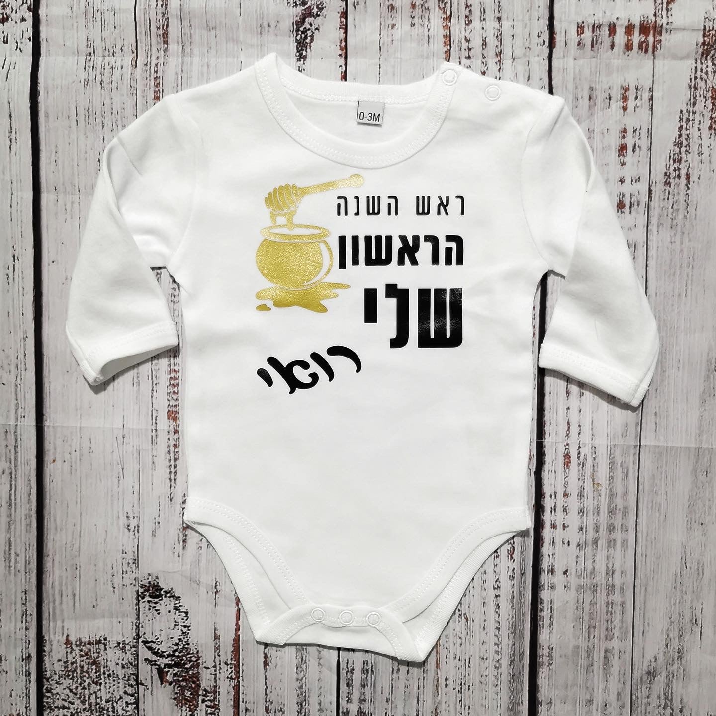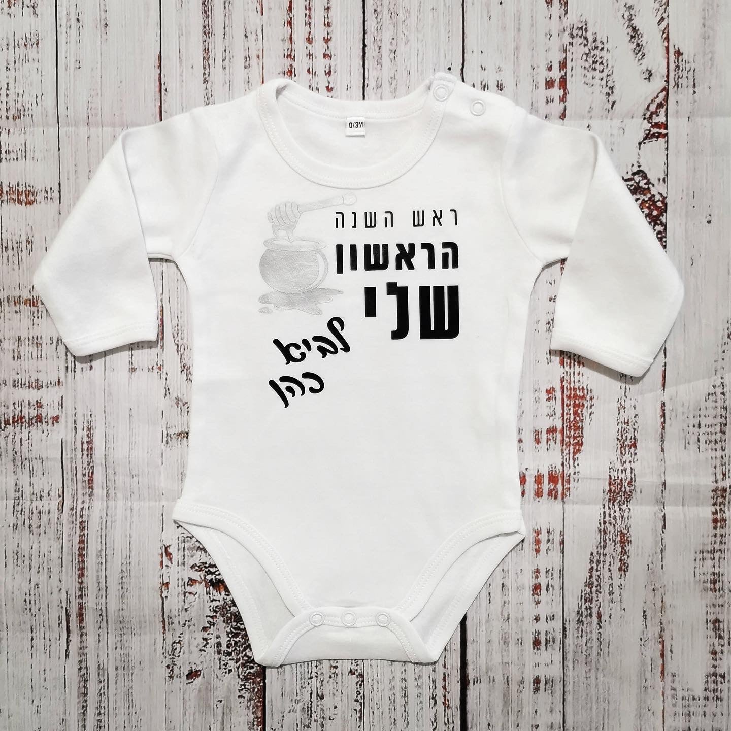 בגד לתינוק בכיתוב אישי ראש השנה הראשון שלי מתנה לחג