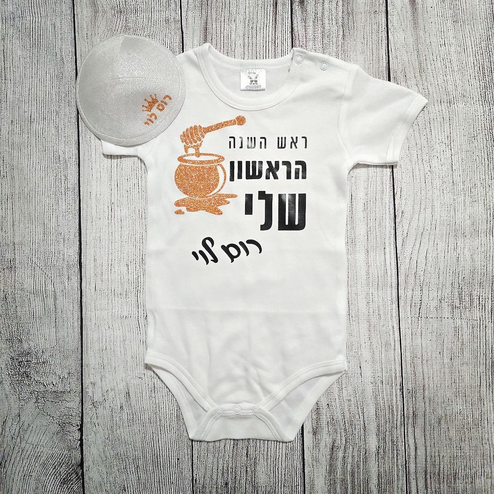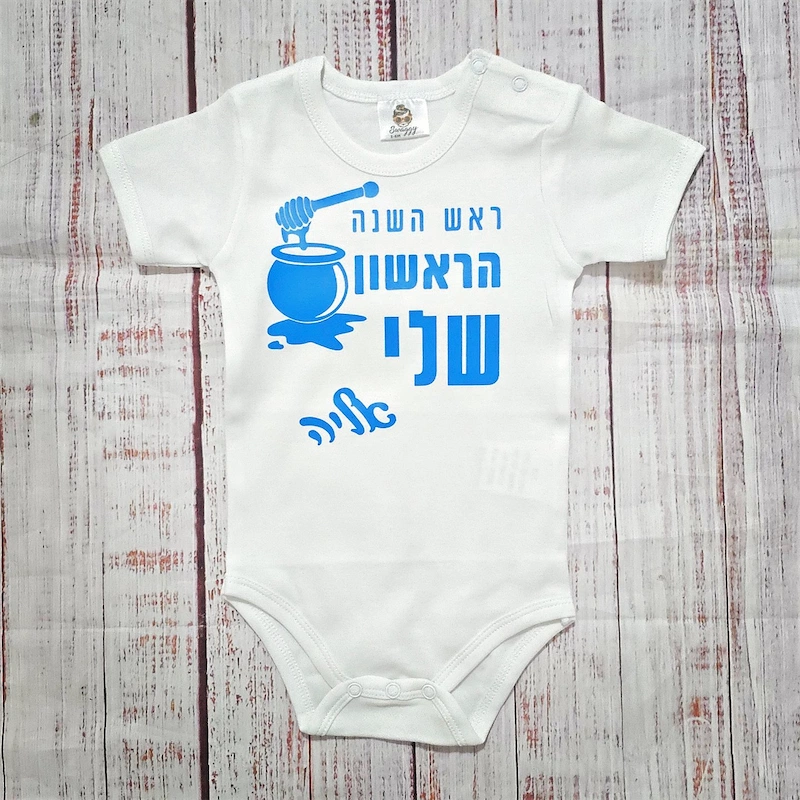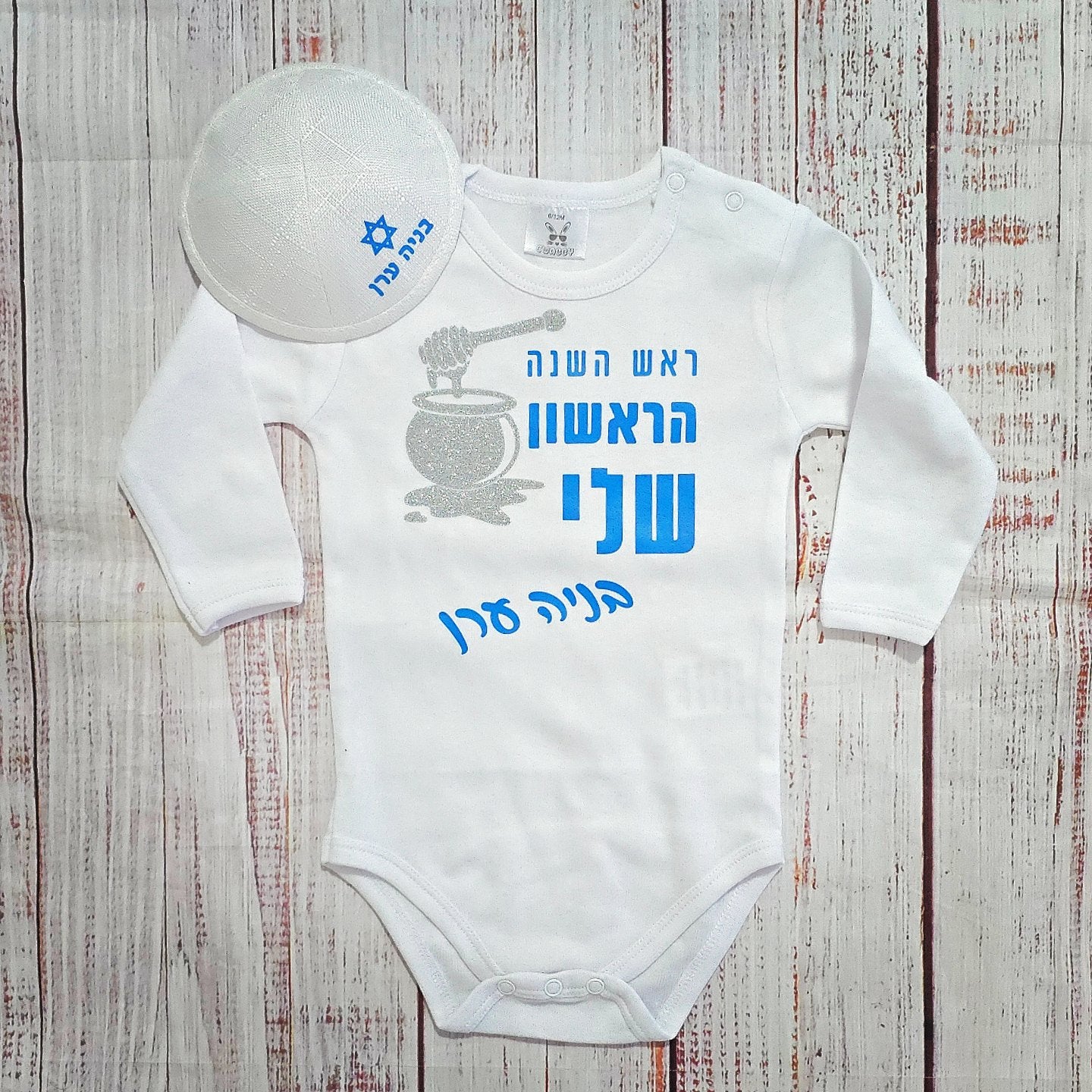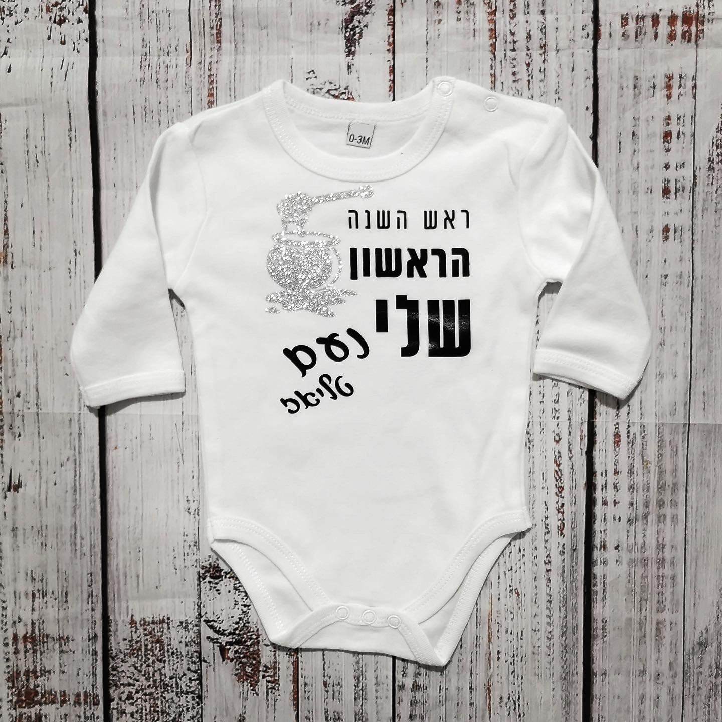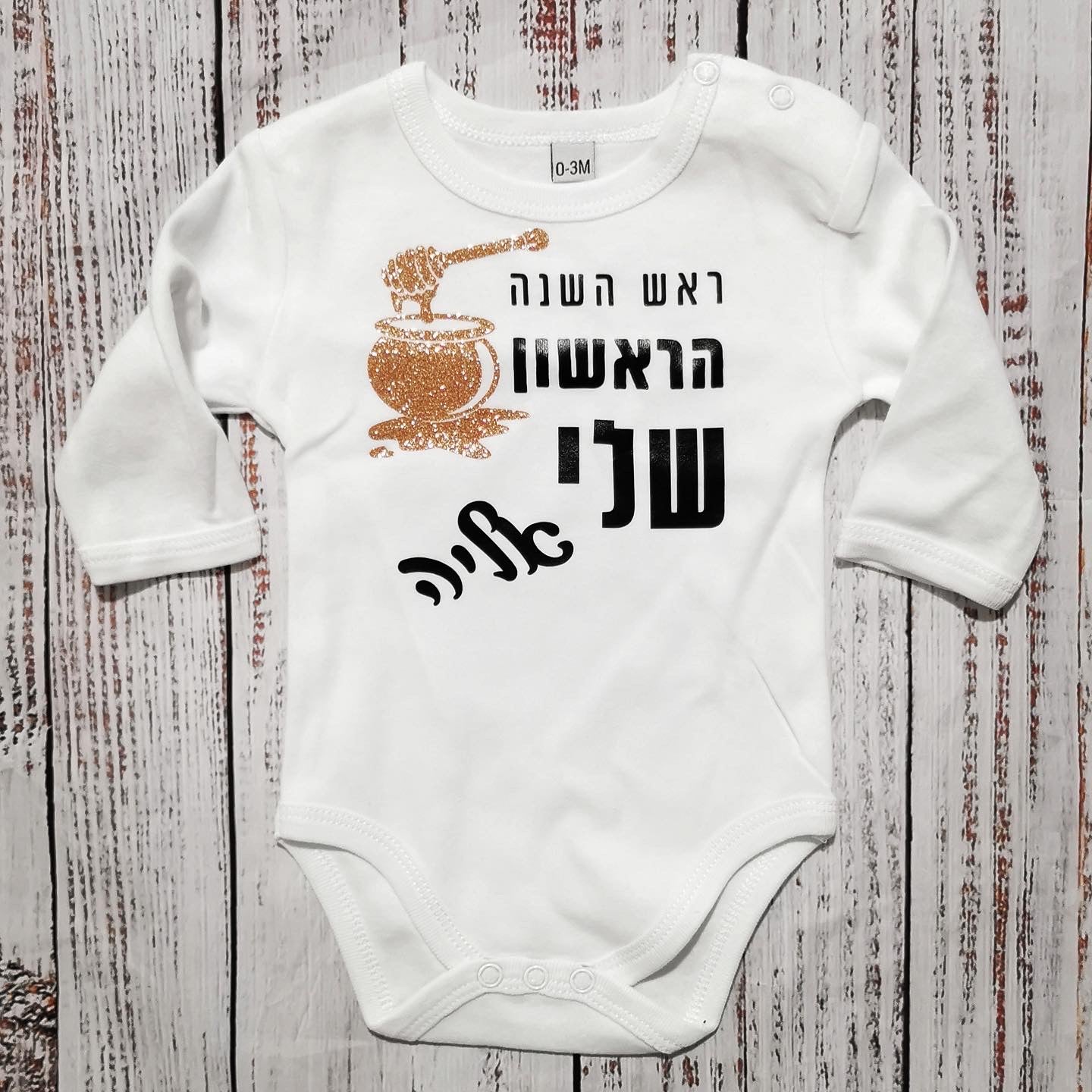 בגד לתינוק בכיתוב אישי ראש השנה הראשון שלי מתנה לחג