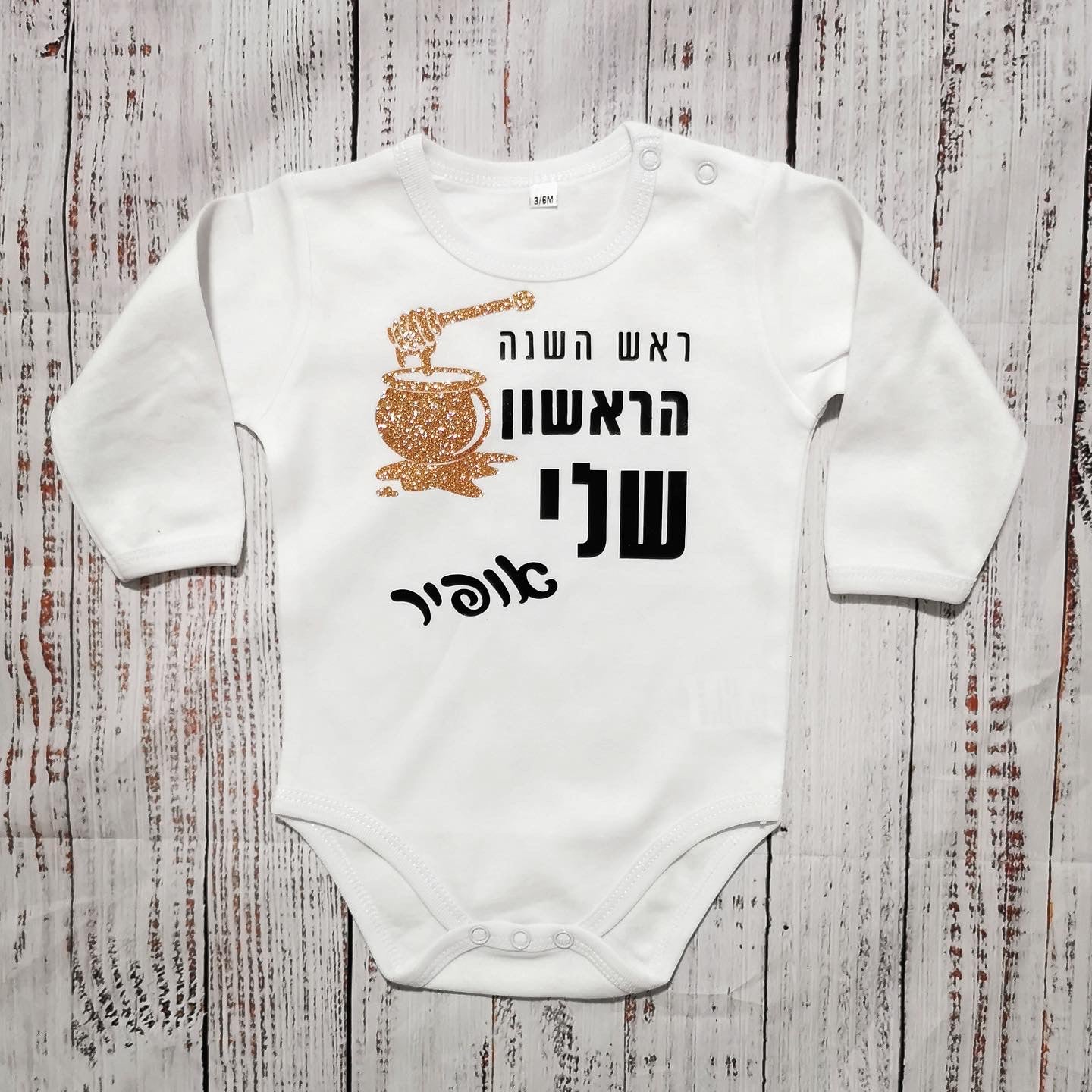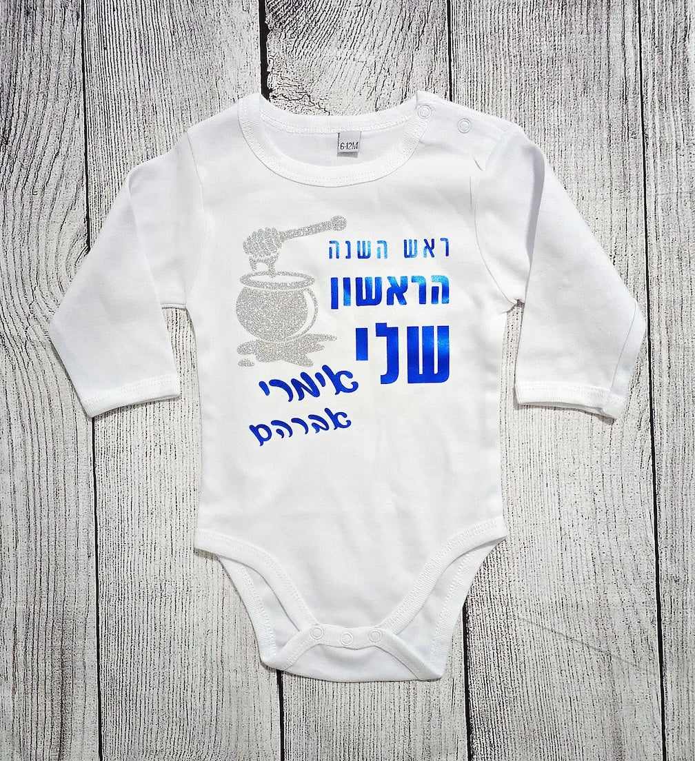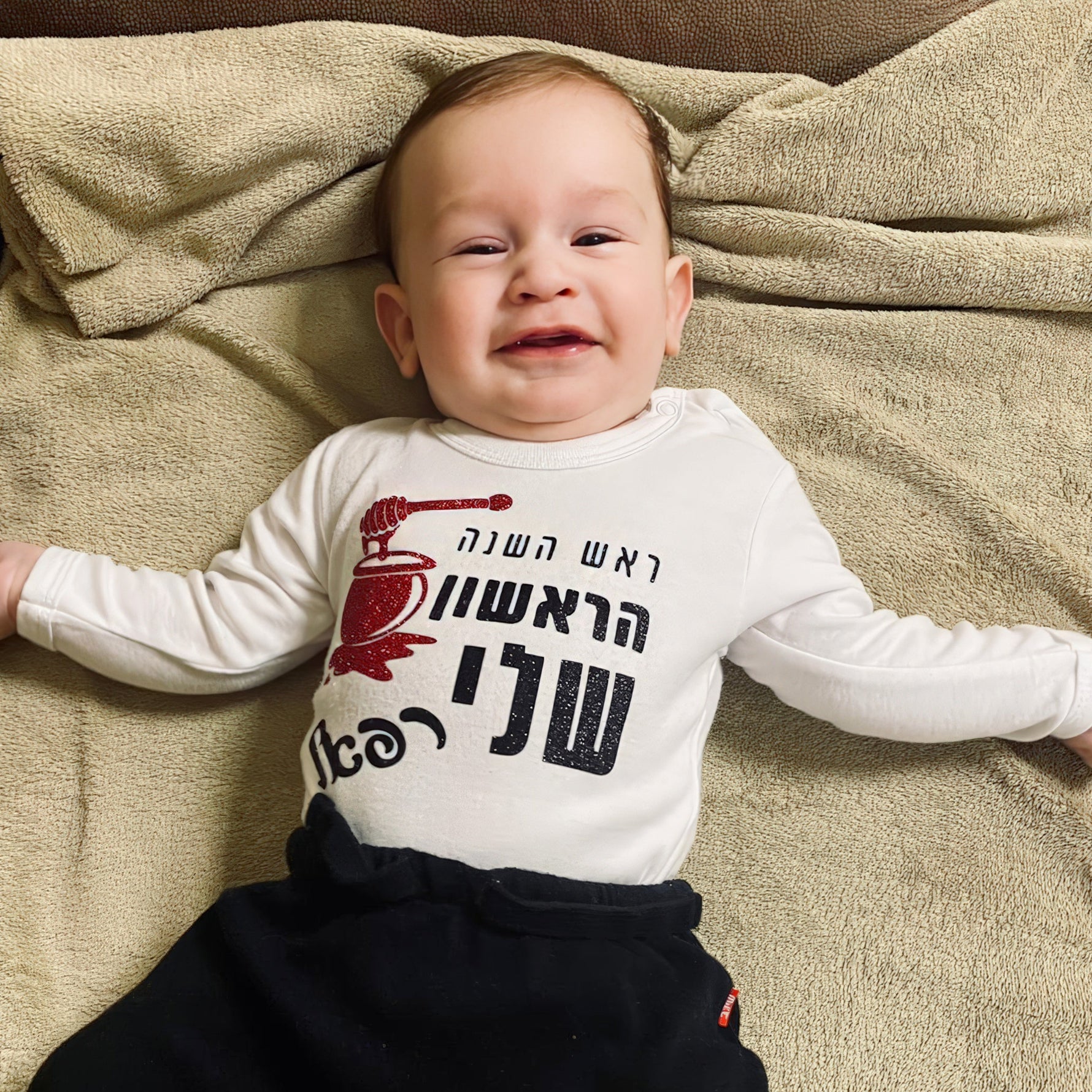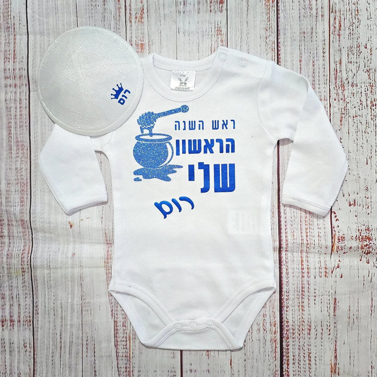 בגד לתינוק בכיתוב אישי ראש השנה הראשון שלי מתנה לחג