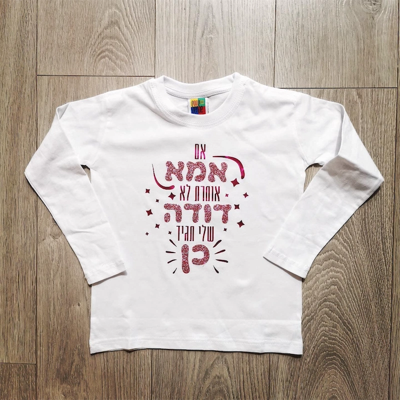 שאלה מעולה, שכל הורה שאי פעם מצא נצנצים במקומות הזויים שואל. אז ככה: ההדפסים שלנו נעשים בעבודת יד בסטודיו, עם חומרים סופר איכותיים ועמידים. והנצנצים? הם עברו אצלנו טירונות. הם לא יורדים, לא מתקלפים, ולא תמצאו אותם על הספה, על הכלב או בקפה של הבוקר. הם נשארים על הבגד, נקודה.