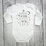 העיצוב המיוחד הזה מגיע על בגד לתינוק לבחירתכם: תוכלו לבחור בבגד גוף לתינוקות עם תיקתקים נוחים, אוברול לתינוקות רך ומפנק, או חולצת ילדים קלאסית ומתוקה. כל האפשרויות שלנו עשויות מ-100% כותנה סרוקה, מהסוג הרך והמלטף ביותר שמתאים בדיוק לעורו העדין של הבייבי, והגזרה תוכננה לאפשר תנועה חופשית ונוחות מקסימלית.