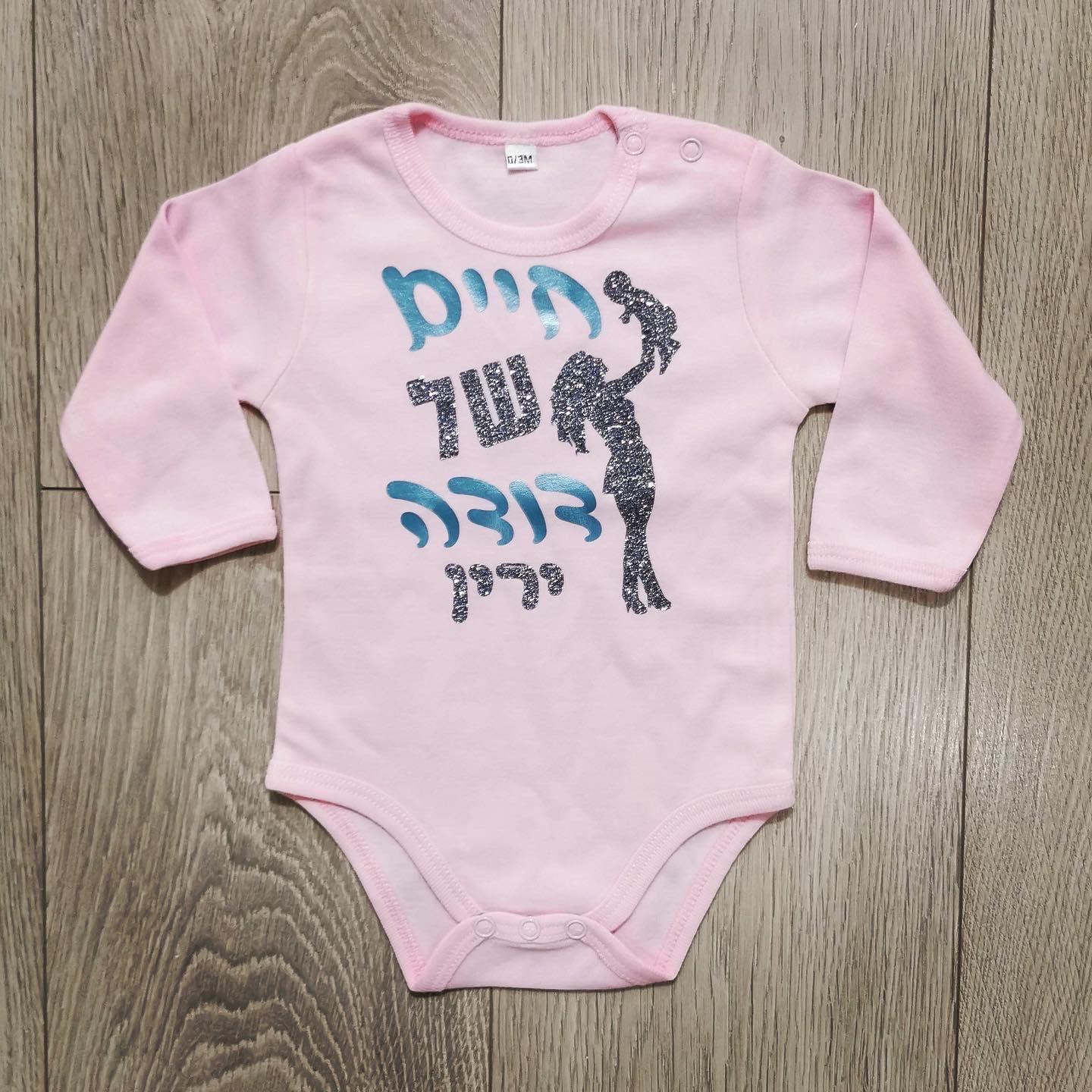 בעברית יש ביטויים שהם עולם ומלואו. "חיים שלי" הוא לא סתם כינוי חיבה, הוא הצהרה. וכשזה הופך ל"חיים של אמא" או "חיים של דודה", זה מקבל משמעות עוד יותר עמוקה ואישית. זה אומר "אתה מרכז הקיום שלי, האושר שלי, הסיבה שלי לחייך". העיצובים האלה הם מחווה לאהבה האינסופית והבלתי מתפשרת הזו. בין אם זו אמא שמרגישה שהיצור הקטן הזה הוא כל עולמה, או דודה שהאחיין או האחיינית הפכו להיות הדבר הכי יקר לה, הבגד הזה אומר הכל במילים פשוטות ונוגעות ללב. זו הצהרה של שייכות, של אהבה טהורה. זה בגד שהוא חיבוק. כשהבייבי לבוש בזה, הוא בעצם עוטף את עצמו באהבה של אמא או של דודה, ובו זמנית, מחזיר להן את האהבה הזו במלואה. זו מתנה אישית ומרגשת, שחוגגת את הקשר המיוחד והבלתי ניתן להפרדה הזה. וכדי שה"חיים" שלכן ירגישו הכי טוב שאפשר, כל בגד שלנו מיוצר בישראל מ-100% כותנה סרוקה ורכה, שמרגישה כמו הדבר הכי מנחם בעולם. הגזרה מתוכננת בקפידה כדי להעניק נוחות מקסימלית, וההדפסה העדינה והמרגשת נעשית בעבודת יד בסטודיו שלנו, עם צבעים איכותיים שישמרו על המסר החשוב הזה לאורך זמן. בסופו של דבר, זו הדרך הכי יפה להכריז על האהבה הכי גדולה. מתנה שהיא גם בגד, גם הצהרה, וגם תזכורת מתמדת למה שבאמת חשוב בחיים.