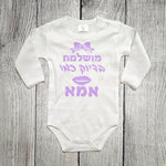 העיצוב "מושלמת בדיוק כמו אמא" הוא מחמאה מתוקה והצהרת אהבה מרגשת. הוא חוגג את הקשר המיוחד והבלתי ניתן להפרדה בין אמא לבת, ואומר בצורה הכי ברורה שיש: התפוח לא נפל רחוק מהעץ. זוהי מתנה שהיא כולה הערכה והכרה ביופי, בחוכמה ובטוב הלב של אמא. כשהבת הקטנה לובשת את הבגד הזה, היא הופכת למראה חיה של אמה. זהו רגע של גאווה עצומה עבור האם, שמקבלת את החיזוק הכי טהור ואמיתי שיש מהאדם שהיא הכי אוהבת. זה מחזק את הקשר ביניהן ויוצר זיכרון מתוק של "כמו אמא, כמו בת".