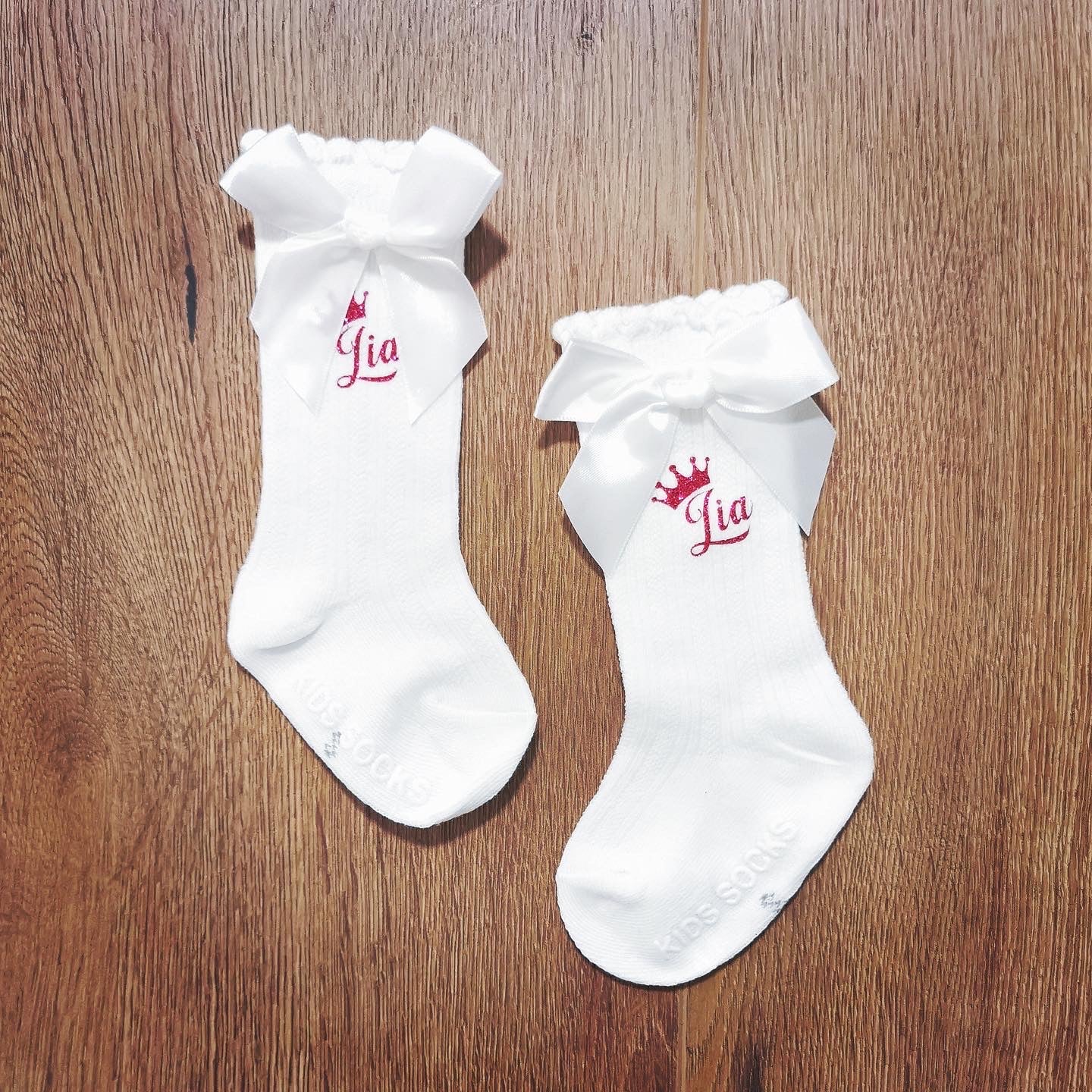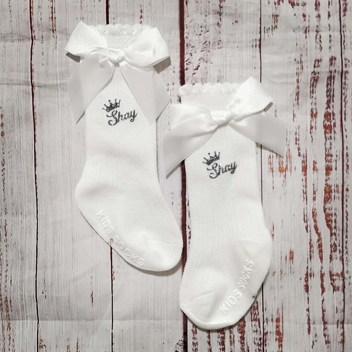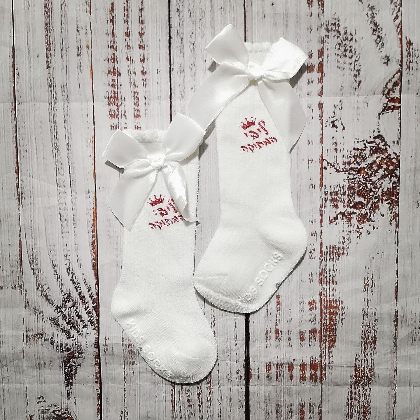גרב תינוקות בעיצוב פפיון במגוון צבעים מהממים שמתאימים לכל בגד שתבחרו. ניתן להדפיס על הגרביים את שם התינוקת, בעברית או באנגלית.
