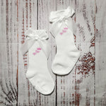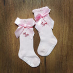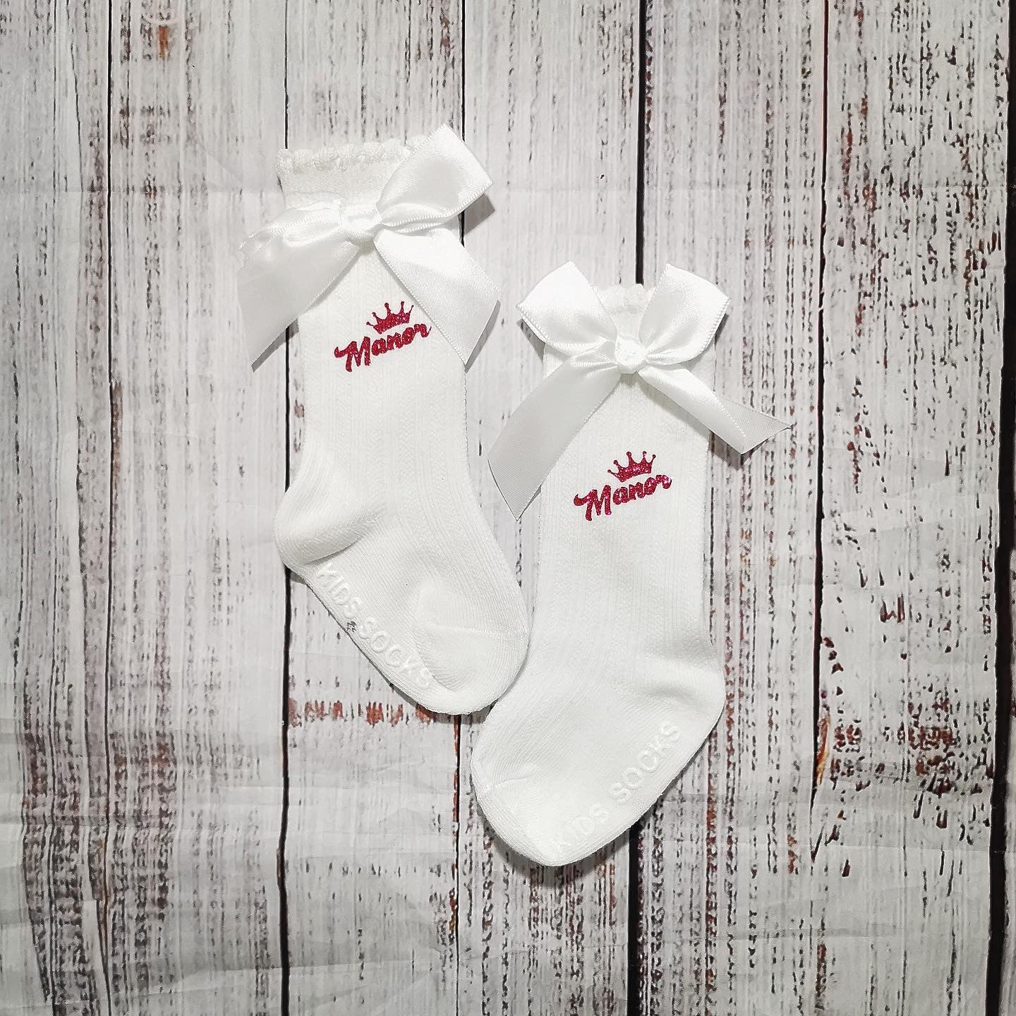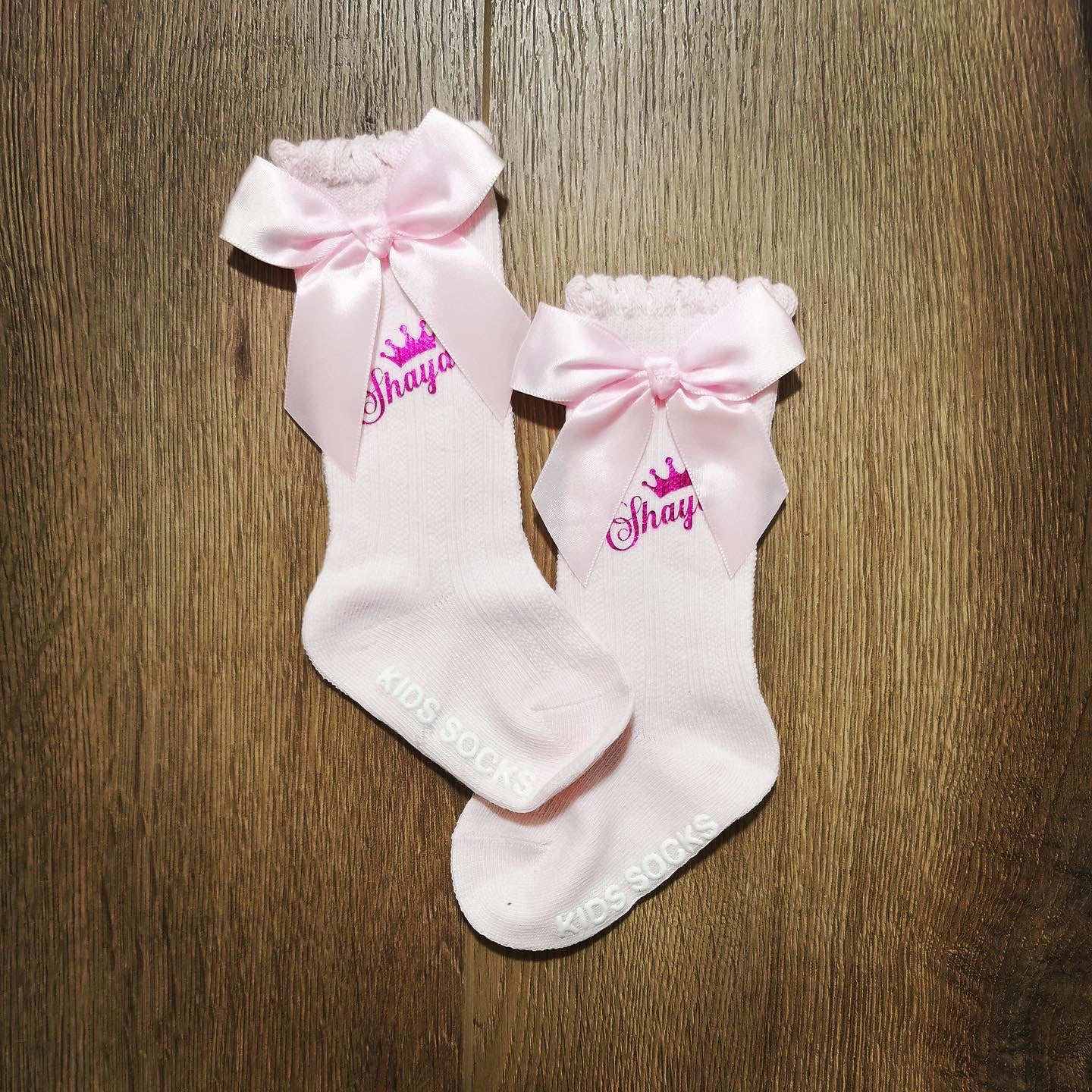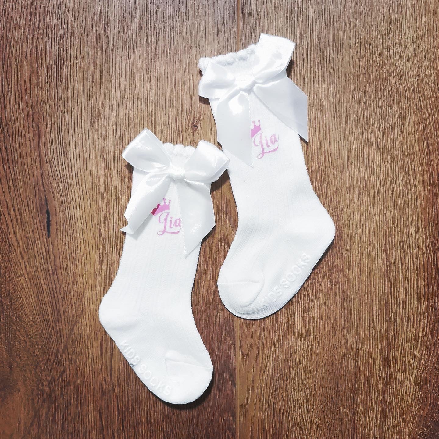 גרב תינוקות בעיצוב פפיון במגוון צבעים מהממים שמתאימים לכל בגד שתבחרו. ניתן להדפיס על הגרביים את שם התינוקת, בעברית או באנגלית.
