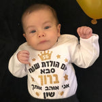 יש אלף דרכים להגיד מזל טוב. אפשר לכתוב ברכה ארוכה, לקנות מתנה יקרה או להפיק סרטון מרגש. אבל לפעמים, אחרי כל הרעש והצלצולים, כל מה שצריך זה את הברכה הכי קלאסית, הכי נקייה והכי אמיתית שיש: "יום הולדת שמח". הקסם האמיתי של העיצוב הזה הוא לא במילים עצמן, אלא במי שמגיש אותן. כשהברכה הזו מגיעה מודפסת על הבטן של הבייבי הכי מתוק בעולם, היא הופכת להיות הדבר הכי מרגש וטהור שיש. זה הרגע שבו כולם בחדר פשוט מחייכים, כי אין דבר יותר חזק מהפשטות המתוקה הזו.