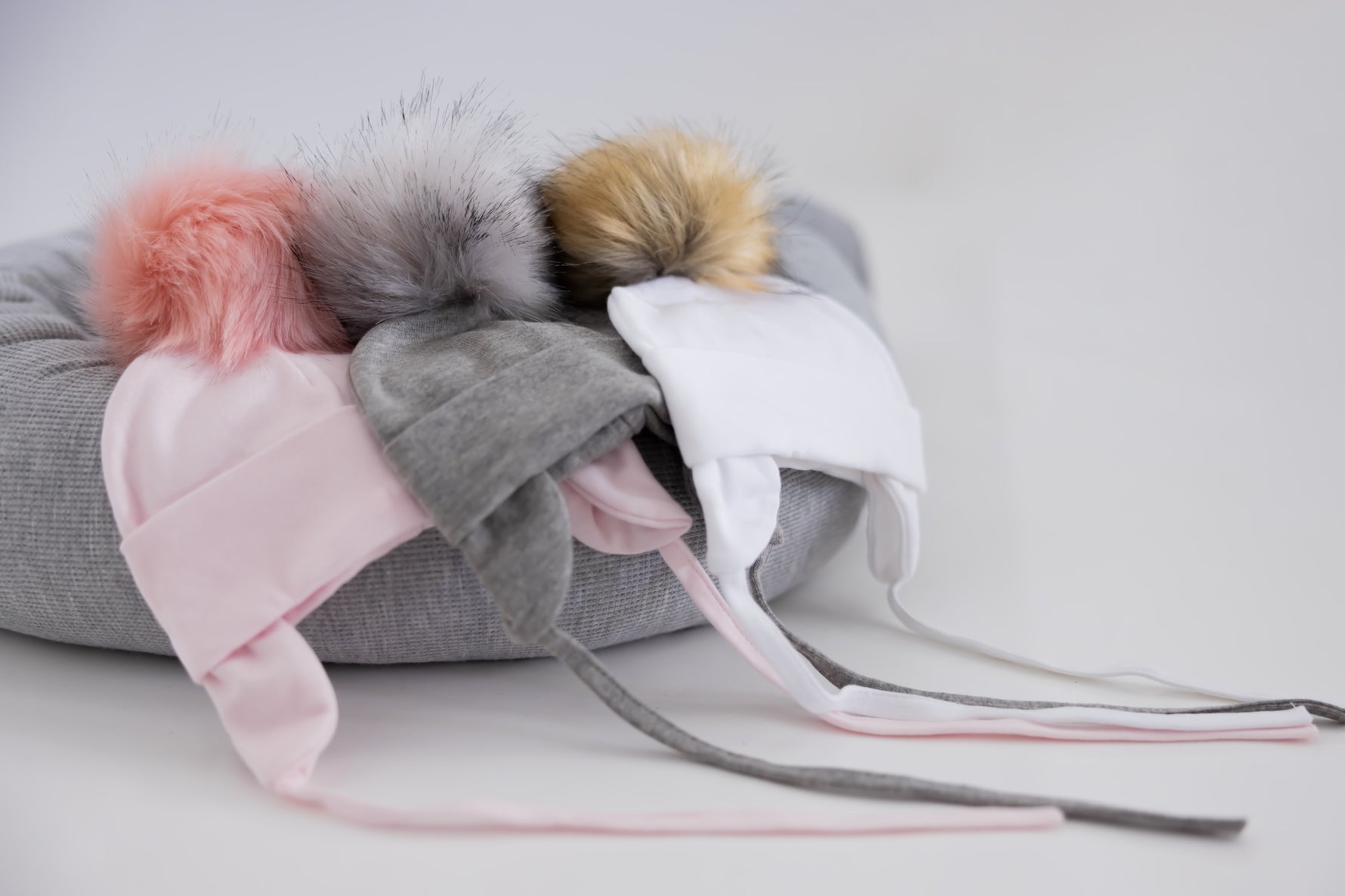 - כובע פונפון: אופנתי מ-100% כותנה עם כיסוי אוזניים ופופנון אופנתי (נשלף עם כפתור!) במגוון צבעים ועם אפשרות להוסיף את שם הבייבי