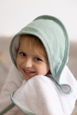 - מגבת קפוצ׳ון עוטפת: מגבת נעימה וסופגת, גם היא מגיעה מבד וופל בצד החיצוני ובצבעים לבחירה ירוק/ורוד/אפור, לפנק את הבייבי בסיומה של כל המקלחת