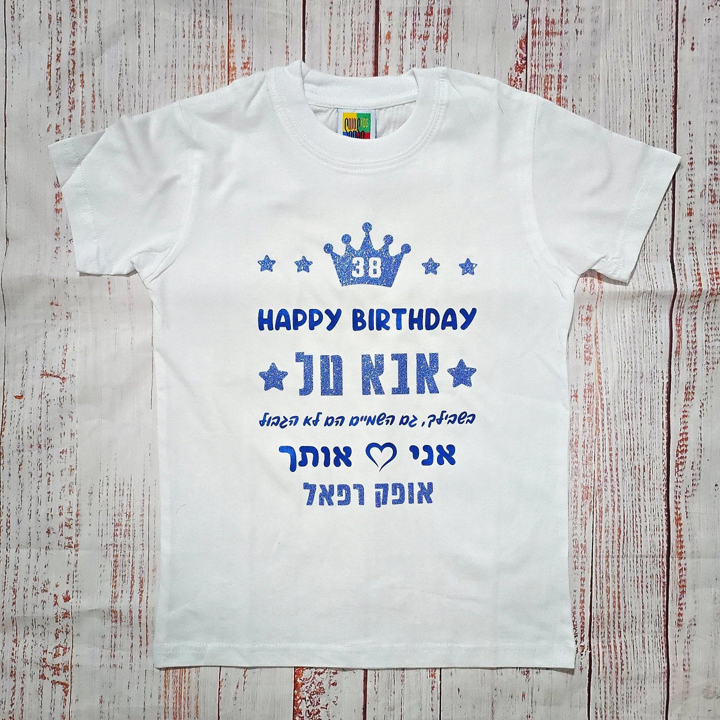 כדי להתאים את העיצוב לפרטים שלכם יש לבחור ולמלא את הפרטים כפי שאתם רוצים לעצב את הבגד. התמונות הן דוגמאות בלבד - הפרטים שתבחרו יופיעו על הבגד בדיוק כמו בעיצוב עצמו.