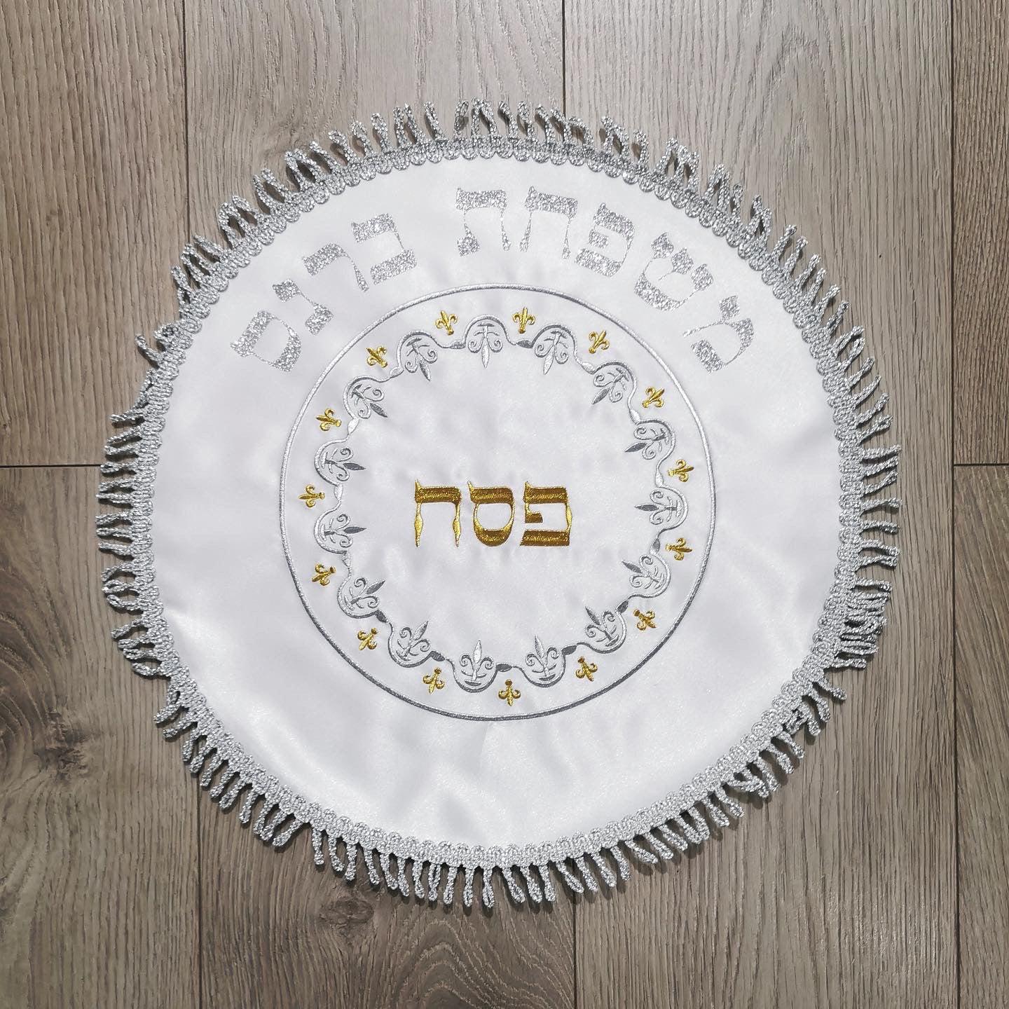 כיסוי מצה לפסח בעיצוב אישי, מבד סאטן איכותי ויוקרתי ובצורת עיגול עם כיסים לשמירת המצות. ניתן לבחור כיתוב אישי ממבחר הצבעים לבחירה. מלאי מוגבל מאוד! העיצוב שבתמונה לא ניתן לשינוי מלבד ההדפס האישי. הכיסוי שקיים במלאי הינו הכיסוי שבתמונה הראשית